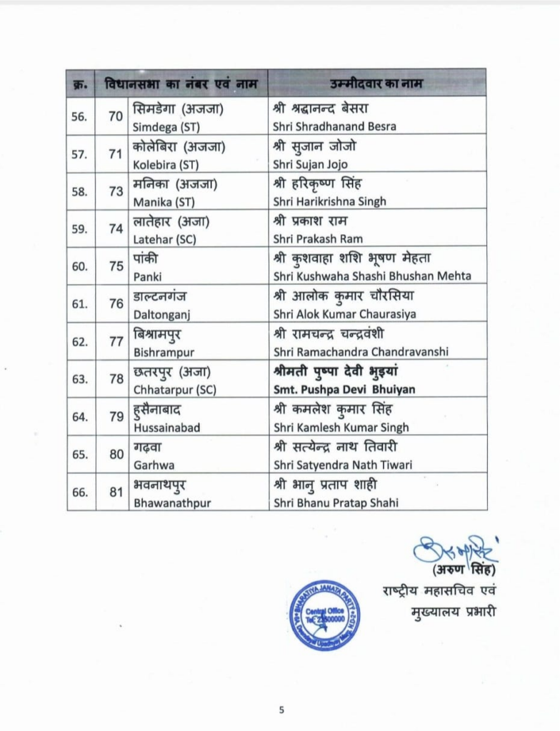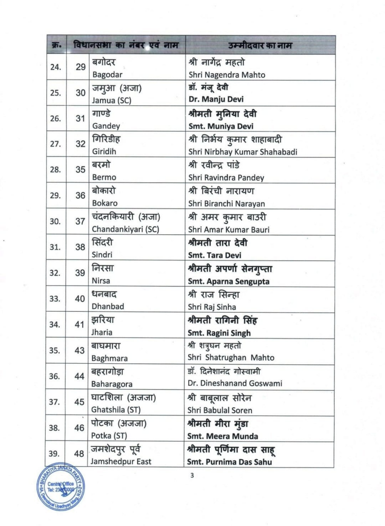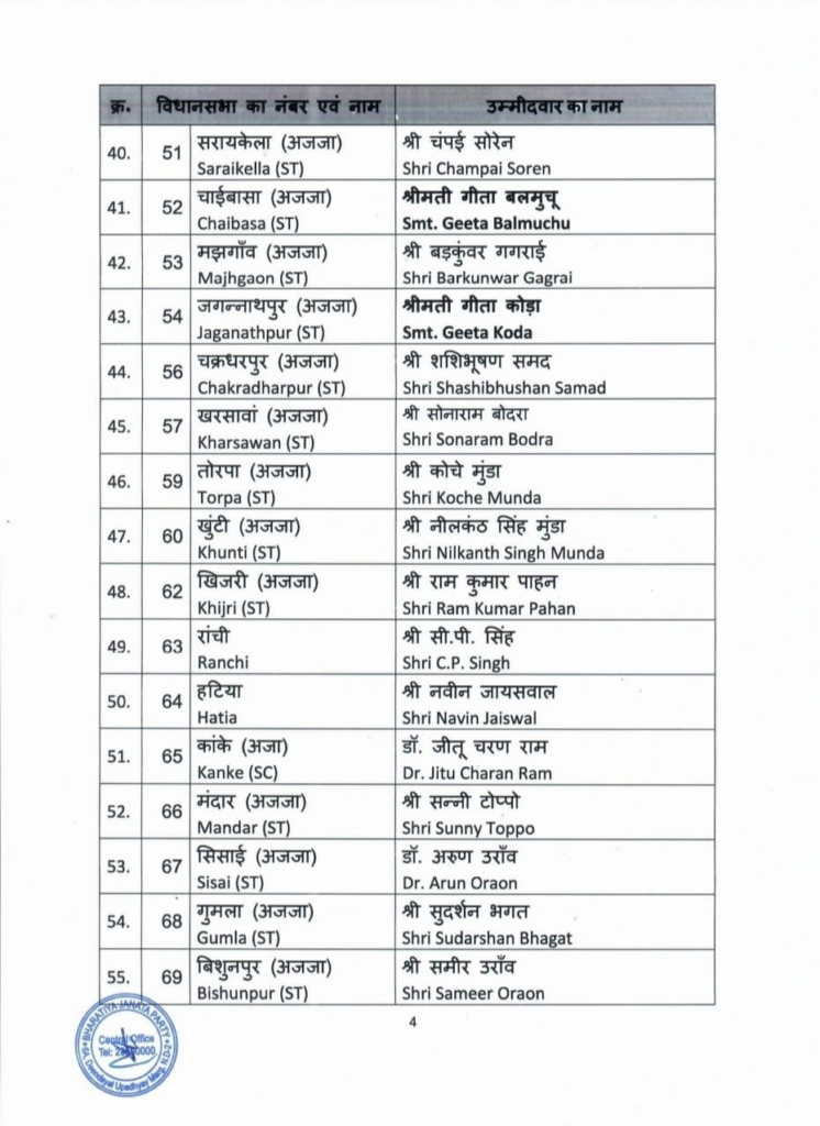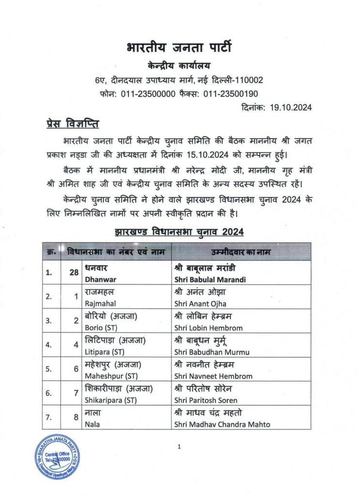यहाँ देखें झारखंड बीजेपी की पूरी लिस्ट (Jharkhand BJP Candidates List 2024)