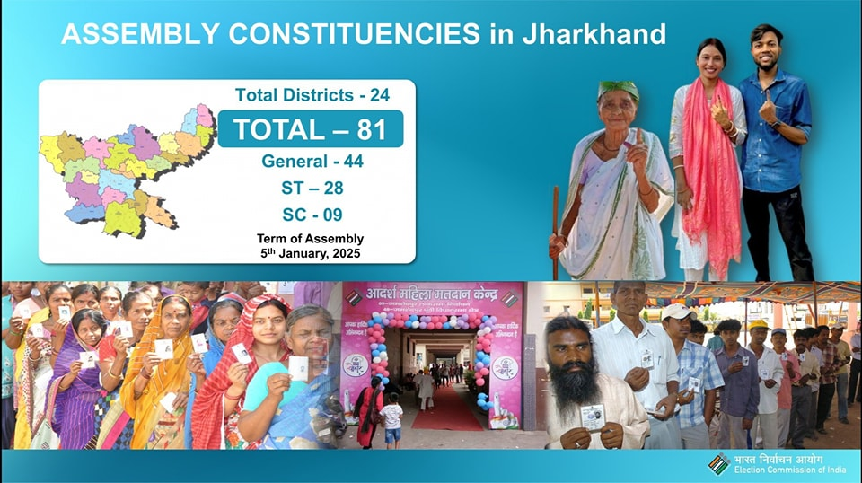 आयोग ने कहा कि झारखंड की 81 विधानसभा सीटों में से 28 सीटें अनुसूचित जनजाति और 9 सीटें अनुसूचित जाति के लिए आरक्षित है। झारखंड में 2.6 करोड़ से अधिक मतदाता अपने मताधिकार का प्रयोग कर सकेंगे।इसमें एक करोड़ 29 लाख महिला और एक करोड़ 31 लाख पुरुष मतदाता शामिल है। सभी मतदान केंद्रों पर मूलभूत सुविधाएं उपलब्ध कराई जाएगी। जबकि निष्पक्ष और भयमुक्त वातावरण में मतदान कराने के लिए सुरक्षा के आवश्यक इंतजाम किए गए है।