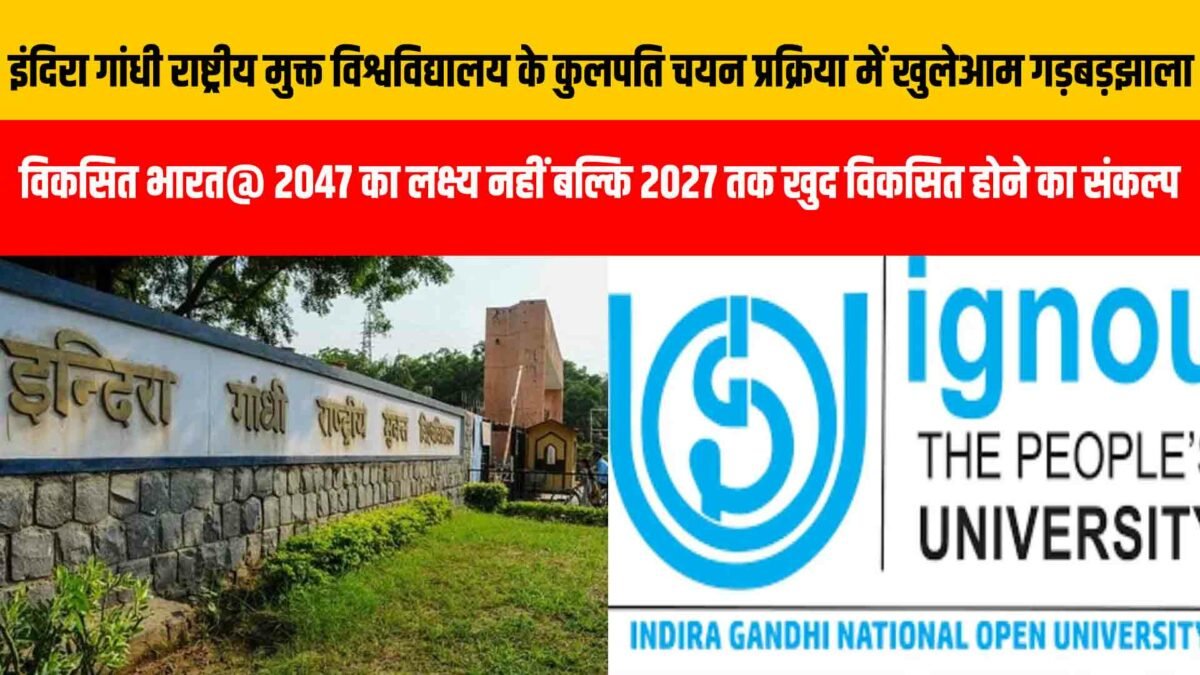 ब्यूरो रिपोर्ट: विकसित भारत@ 2047 का लक्ष्य नहीं बल्कि 2027 तक खुद विकसित होने का संकल्प: देश की राजधानी स्थित देश के सबसे बड़े और प्रतिष्ठित इंदिरा गांधी राष्ट्रीय मुक्त विश्वविद्यालय में कुलपति चयन में अपनाई गई प्रक्रिया पर गंभीर सवाल खड़े हो रहे हैं। देश भर के उच्च शिक्षण संस्थानों को पारदर्शिता और शुचिता का पाठ पढ़ाने वाले भारत सरकार के शिक्षा मंत्रालय और विश्वविद्यालय अनुदान आयोग की नाक के नीचे इंदिरा गांधी मुक्त विश्वविद्यालय के कुलपति सर्च एवं सिलेक्शन की प्रक्रिया में नियमों का मखौल उड़ाया जा रहा है। जहां कुलपति के पद का उम्मीदवार अपने चयन की सर्च एंड सिलेक्शन कमेटी के सदस्यों के नाम तय करने वाली बैठक का हिस्सा बना रहा यानी जब समिति में अपने चहेते होंगे तभी तो स्वयं का सिलेक्शन होगा। लेकिन भारत सरकार के शिक्षा मंत्रालय व विश्वविद्यालय अनुदान आयोग और इससे जुड़े देश के नीति निर्धारण करने वाले लोग चुप्पी लगाकर मस्त बैठे हुए हैं कि जब तक कोई शिकायत आएगी तब तक तो हमारा कुलपति सेट हो जाएगा।