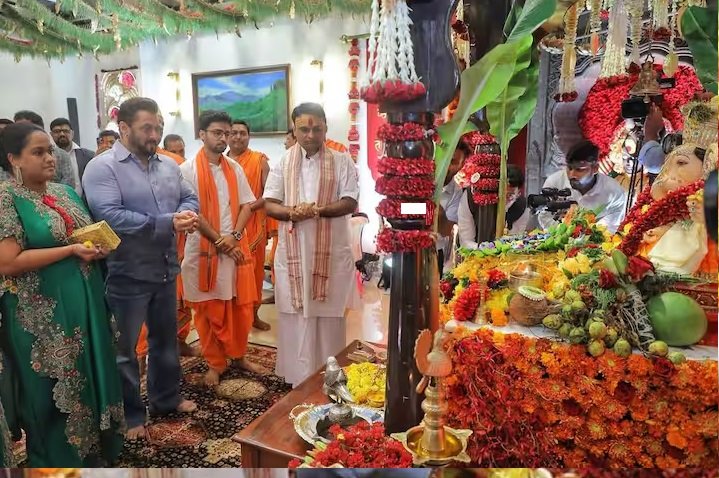 देश भर में गणेश चतुर्थी का जश्न बड़े ही धूमधाम से मनाया जा रहा है। बॉलीवुड के सितारे भी इस त्योहार को हर्षोल्लास के साथ मनाते हैं। जश्न के बीच सलमान खान शनिवार को अपनी बहन अर्पिता के साथ महाराष्ट्र के मुख्यमंत्री एकनाथ शिंदे के घर पहुंचे और गणेश चतुर्थी के समारोह का हिस्सा लेते हुए दिखाई दिए।